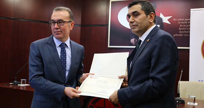 Vergi ve SGK Primleri Borçlarının yapılandırılması bilgilendirme toplantısında Gaziantep Vergi Dairesi Başkanı Halil Tekin, Vergi dairelerine ödenmesi gereken ve diğer borçlar, SGK Gaziantep İl Müdürü Mehmet Uzun, sigorta primleri ve bu primlere ilişkin diğer borçların yapılandırılması ile ilgili olarak bilgilendirme yaparak, katılımcıların sorunlarını yanıtladılar.