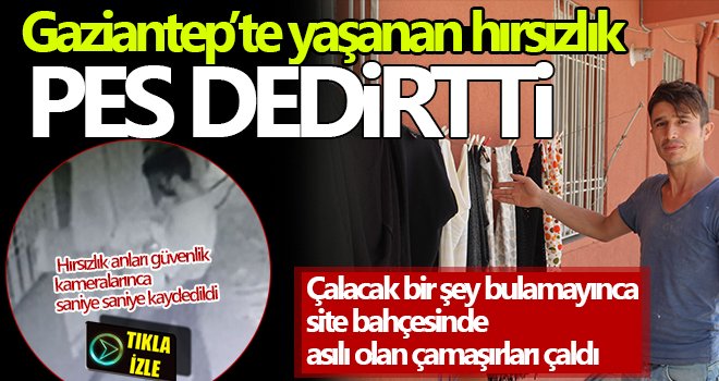 Gaziantep’te bir evin pencere korkuluklarına kuruması için asılan çamaşırları çalan şahıs, güvenlik kamerasına yakalandı. Güvenlik kamerasına yansıyan çamaşır hırsızlığı ise pes dedirtti.