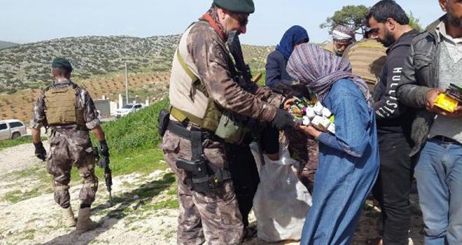'Zeytin Dalı Harekatı ile güvenli hale getirilen Afrin'in köylerinde, AFAD’ın yardımları, bölgede görev yapan jandarma ve polis özel harekat birlikleri tarafından dağıtıldı.