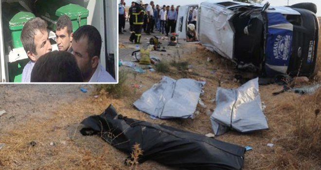 Gaziantep’te dün bayram ziyaretinden dönenleri taşıyan minibüsün devrilmesi sonucu ölen 5 kişinin cenazeleri otopsilerinin ardından yakınlarına teslim edildi.