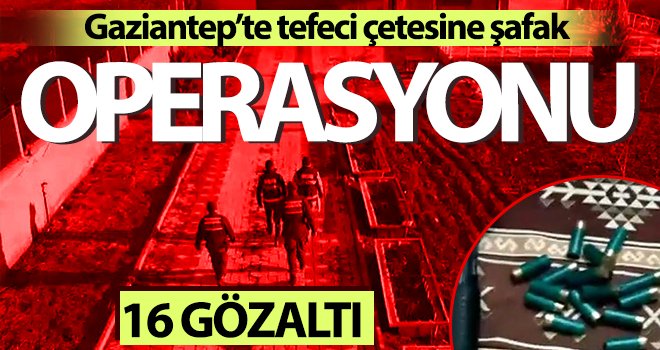 İl Emniyet Müdürlüğüne bağlı Kaçakçılık ve Organize Suçlarla Mücadele (KOM) Şube Müdürlüğü ekipleri vatandaşları yüksek faizle borç batağına sürükleyen ve tehdit eden tefeci çetesine operasyon düzenledi. 16 kişilik çeteyi uzun bir süre teknik ve fiziki olarak takip eden KOM ekipleri elde edilen istihbari bilgilerin ardından operasyon için düğmeye bastı. Gaziantep Cumhuriyet Başsavcılığı koordinesinde harekete geçen ekipler çeteyi şafak operasyonuyla çökertti.