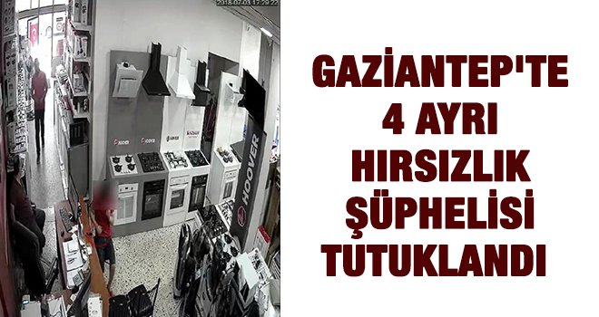 Gaziantep'te, 4 ayrı hırsızlık olayını gerçekleştirdiği güvenlik kameralarından anlaşılan şüpheli, polis tarafından yakalandıktan sonra, çıkarıldığı mahkemece tutuklandı.