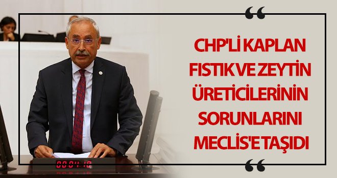CHP Gaziantep Milletvekili İrfan Kaplan, fıstık ve zeytin üreticilerinin sorunlarını TBMM Genel Kurulu’nda dile getirerek üreticilere daha fazla destek verilmesi gerektiğinin altını çizdi.