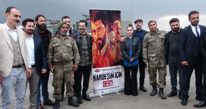 Kültür ve Turizm Bakanlığı'nın da destek verdiği 'Kardeşim İçin Der'a' filminin galası, yapımcı ve oyuncularının katılımıyla Suriye’nin Çobanbey beldesinde yapıldı.