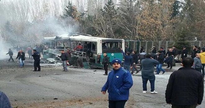 Kayseri'de Erciyes Üniversitesi'nin ana girişinin yakınında, bugün saat 08.45'de içinde çarşı iznine çıkan sivil kıyafetli askerlerin de bulunduğu halk otobüsü geçerken, bomba yüklü araç patlatıldı. Patlamada çok sayıda kişi yaralanarak hastaneye kaldırıldı.