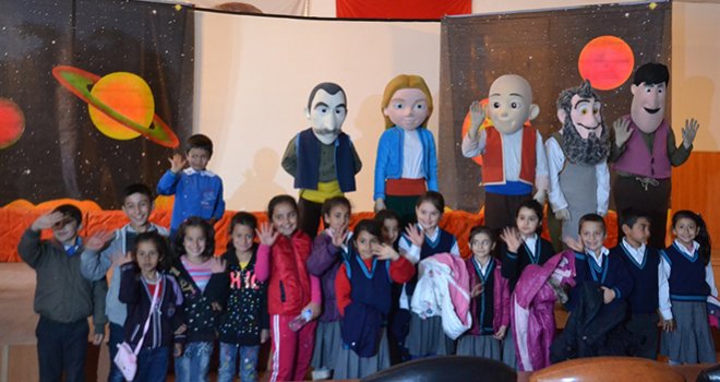 Keloğlan, Bilgecan dede, Balkız, Uzun, Kara Vezir karakterlerini sahnede görünce şaşkınlıklarını gizlemeyen miniklerin, eğlendikleri ve mutlu oldukları görüldü.