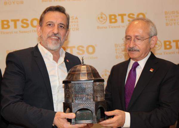 Konuşmaların ardından BTSO Yönetim Kurulu Başkanı İbrahim Burkay, BTSO Meclis Başkanı Remzi Topuk ve Bursa Ticaret Borsası Yönetim Kurulu Başkanı Özer Matlı, CHP Genel Başkanı Kılıçdaroğlu’na hediyeler verdi.