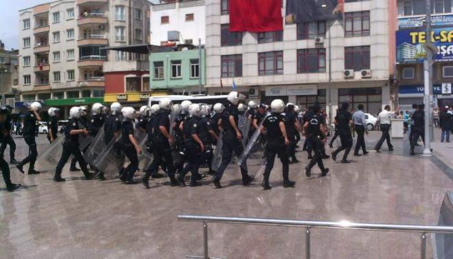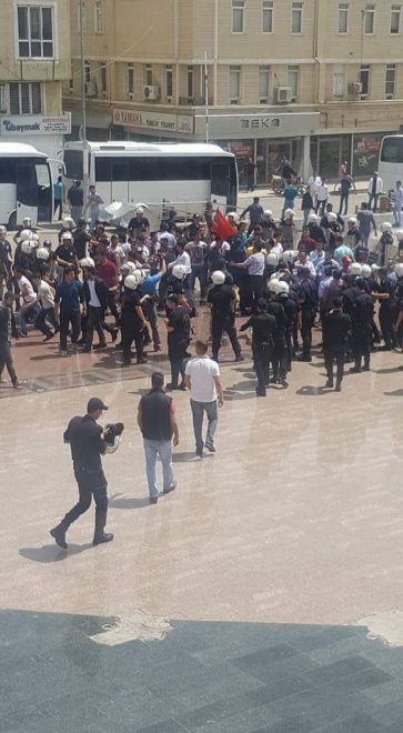 Kalabalığın yürümekte ısrar edip Kilis Valiliği'ne doğru ilerlemesi üzerine polis müdahalede bulundu ve çok sayıda kişiyi gözaltına alarak grubu dağıttı.