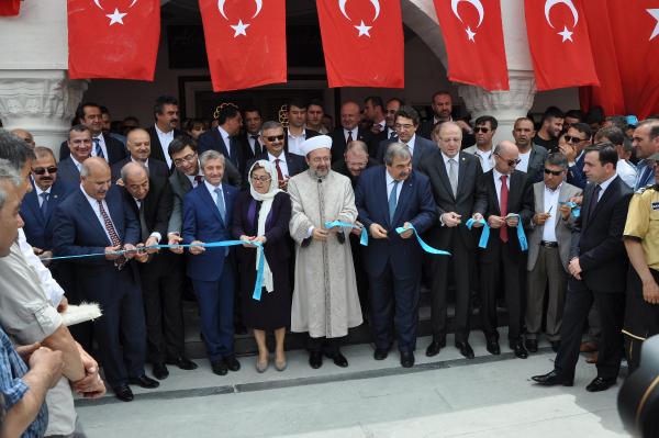 Konuşmaların ardından protokol üyeleriyle birlikte caminin açılışını yapan Görmez, minbere çıkarak cuma hutbesi verdi, ardından cuma namazını kıldırdı.