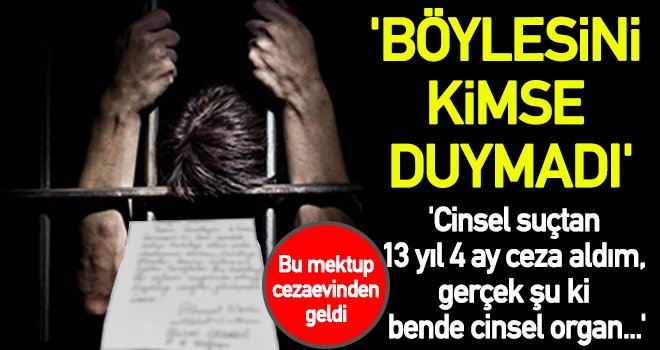 ‘Ben cinsel suçtan 13 yıl 4 ay ceza aldım. Artı 9 yıl alıkoyma, cebir ve tehditten aldım, etti 22 yıl 4 ay… 4 yıl 6 aydır yatıyorum. Gerçek şu ki bende cinsel organ yok. Bana inanmıyorlar. Beni hastaneye sevk etmiyorlar çünkü mahkemenin yanlışı ortaya çıkacak diye korkuyorlar. Bomboş (boş yere) ceza yatıyorum. Siz de benim gibi yanlış bir ceza aldınız. (Benim notum: Aman abicim, ceza yanlıştı ama bizimki cinsel suç değil, Fetö metö vaziyetleri!) Benim dosyam gerçekten Türkiye'de adaletin olmadığını ortaya çıkaracaktır… Dosyayı adresinize göndereceğim…’