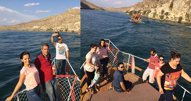 Bayram tatilinin 9gün olması nedeniyle Türkiye’nin bir çok ilinden gelen vatandaşlar Güneydoğunun Bodrumu olarak bilinen Gaziantep-Şanlıurfa il sınırları arasında bulunan koyda gönüllerince gezen yerli turistler tekne turlarıyla vatandaşlar eğlenip coştular.