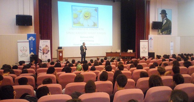 İzmir Ege Üniversitesi Fen Fakültesi Toplantı Salonunda gerçekleşen etkinlikte HKÜ Psikoloji Bölümü Öğretim Görevlisi Klinik Psikolog Mehmet Dinç, "Üniversiteye Hazırlıkta Süreç Yönetimi, Sınav ve Hayat Kaygısı" konulu seminer verdi. Üniversite sınavına hazırlanan 12. Sınıf öğrencilerine yönelik düzenlenen seminere, öğrenciler yoğun ilgi gösterdi.