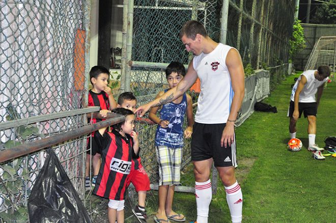 Yeni sezon hazırlıklarını kendi tesislerinde sürdüren Gaziantepspor'un teknik direktörü Mutlu Topçu ve yabancı transferlere büyük ilgi gösteren minik taraftarlar bol bol hatıra fotoğrafı çektirdiler.