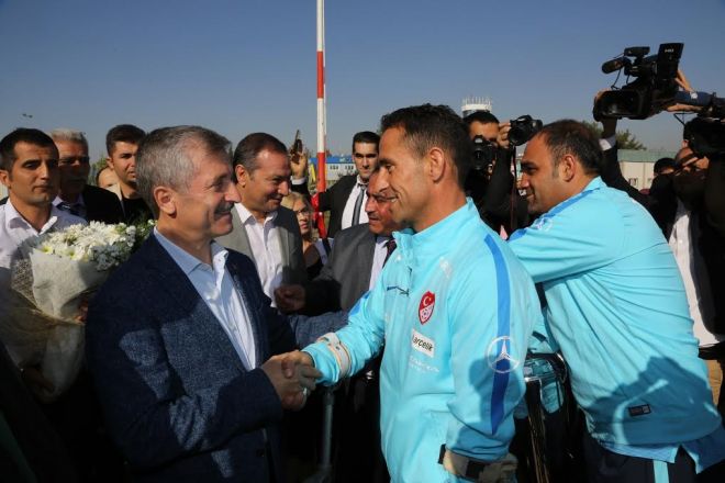 Gaziantep Havalanında başlayan karşılama törenine AK Parti Gaziantep Milletvekili Mehmet Erdoğan, Şahinbey Belediye Başkanı Mehmet Tahmazoğlu, Sanayi Odası Başkanı Adil Konukoğlu Ampute Milli Takımı Kadrosu, başkan yardımcıları, meclis üyeleri sivil toplum kurulu temsilcileri ve protokol üyeleri katıldı.