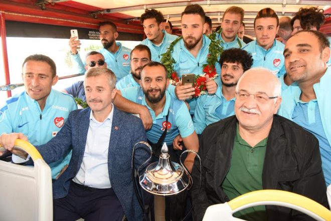 Avrupa Kupası Final karşılaşmasında İngiltere'yi 2-1 mağlup ederek Avrupa Kupasını kazanan Ampute Milli Takımı özel uçakla Gaziantep'e geldi. Havaalanında coşkulu bir kalabalık tarafından karşılanan Ampute Milli Takımı Kadrosu daha sonra Şahinbey Belediyesi tarafından organize edilen üstü açık otobüsle şehir turuna çıktı. Taksici esnafının da araçlarıyla katıldığı yaklaşık 500 araçlık konvoy kent merkezinde tur attı. Tur sırasında Şahinbey Belediyespor’un ve Ampute Milli Takımın kalecisi Fatih Karakuş’un babası Hüseyin Karakuş, Milli Takım oyuncularını onurlandırarak kurban kesti.