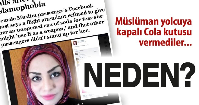 Ancak Müslüman kadın yolcu o sırada hemen yanındaki yolcuya kapalı kutu bira verildiğini görünce birayı kaparak kapağını bizzat açtı ve 'Gördüğünüz gibi silah olarak kullanmadım' diye karşılık verdi.