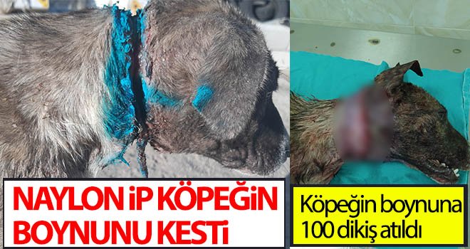 Gaziantep'in İslahiye ilçesinde bir köpeğin boynuna bağlanan naylon ip köpeğin boynunu kesti. Veterinere götürülen köpeğin boynuna 100 dikiş atıldı.