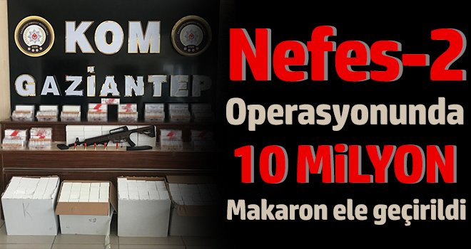 Gaziantep'te gerçekleştirilen Nefes-2 operasyonunda 10 milyon 560 bin 400 adet boş, 7 bin 300 adet dolu makaron ele geçirildi.