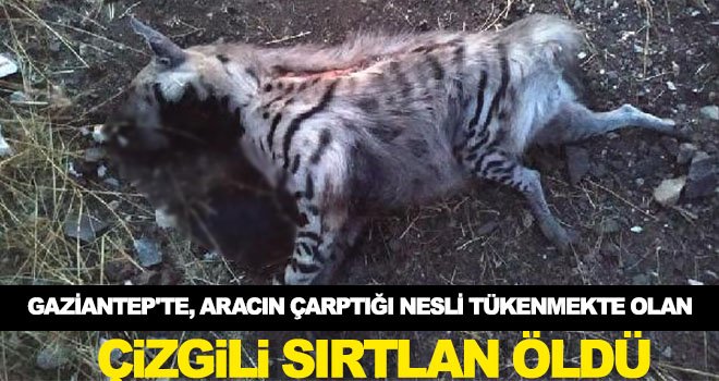 Gaziantep’in Nurdağı ilçesinde, bir aracın çarptığı nesli tükenmekte olan çizgili sırtlan öldü.