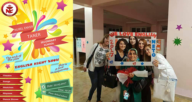 Nurel Enver Taner Ortaokulu, yoğunlaştırılmış İngilizce eğitiminin meyvelerini almaya devam ediyor. Okuma, yazma, dinleme ve konuşma üzerine eğitimlerini alan öğrenciler İngilizce gecesi programı ile ailelerinin karşısına çıktı.