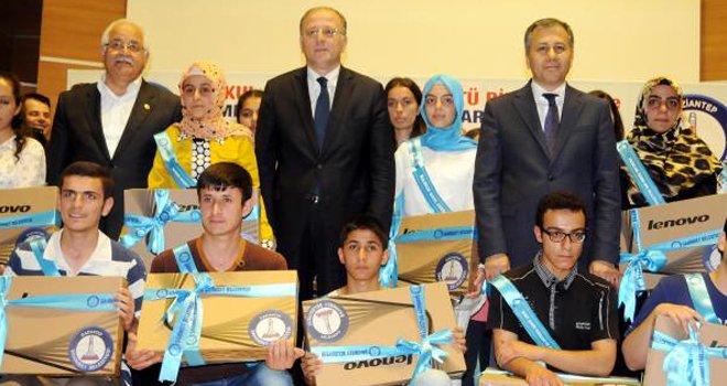 GAZİANTEP'te, merkez ilçe Şahinbey Belediyesi, ilçedeki 118 okulun birincisi olan öğrencileri dizüstü bilgisayar hediye ederek ödüllendirdi.