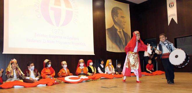 Sunuculuğunu ONKO yardım ekibinden Semra Göklü'nün yaptığı “23 Nisan Millî Egemenlik ve Çocuk Bayramı” kutlaması, GAÜN Şahinbey Araştırma ve Uygulama Hastanesi Oditoryumunda çocukların gösterileri büyük beğeni toplarken, gösteride çocukların ellerini bir an olsun bırakmayan Onkoloji Hastanesi öğretmenleri, çalışanları ve idarenin desteğiyle kutlandı.