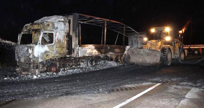 Teröristler aynı saatlerde Türkiye-İran sınırında bulunan Gürbulak Sınır Kapısına yaklaşık 20 kilometre mesafede TIR'ları durdurdu. Teröristler 'dur' ikazlarına uymayan TIR'ları kalaşnikof tüfeklerle taradı, molotof kokteyli attı. Açılan ateş sonucu kurşunlar İran plakalı olduğu belirlenen TIR'lara isabet ederken, 2 TIR da yanarak kül oldu. Polis ve jandarma, Türkiye-İran ulusarası karayolunu sabaha kadar trafiğe kapattı. İranlı TIR sürücüleri kalabalık bir grubun uzun namlulu silahlarla kendilerine 'dur' ikazında bulunduklarını belirterek, "Korktuğumuz için durmadık. Bu sırada bize ateş açtılar. TIR'larımızı taradılar" dediler. Çıkan olaylarda 1 İranlı sürücünün yaralandığı bildirildi.