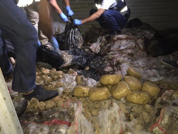 Kaçakçılık ve Organize Suçlarla Mücadele Şube Müdürlüğü ekipleri, dün gece geç saatlerde Gaziantep- Şanlıurfa otoyolunun Doğu gişelerinde yaptığı uygulamada şüphelendiği plakası açıklanmayan kamyonu durdurdu. Kasasındaki çok sayıda çuvaldaki patateslerin çürük olmasından şüphelenen polis, kamyonu detaylı arama için Çevik Kuvvet Şube Müdürlüğü otoparkına götürdü. Burada yapılan aramada çürümüş patateslerin bulunduğu çuvalların içinde paketlere sarılı 90 kilo toz esrar ele geçirildi.