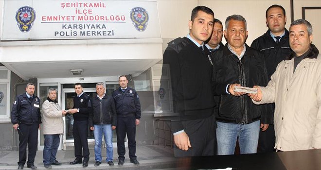 Gaziantep Emniyet Müdürlüğü'nde görevli polis memuru Kemal Ateş, dün sabah mesaiden çıktıktan sonra evine giderken Değirmiçem Mahallesi'nde yerdeki poşet içerisinde 31 bin lira buldu. Polis memuru Ateş, bulduğu poşetteki paraları sahibine ulaştırılması için Karşıyaka Polis Merkezi'ne götürdü. Burada yapılan araştırma sonunda paranın sahibinin Cengiz Kökçü olduğu belirlendi. Polislerin bilgi vermesiyle karakola davet edilen Cengiz Kökçü'ye 31 bin lirası parayı bulan polis memuru Kemal Ateş ve karakol amiri tarafından teslim edildi.