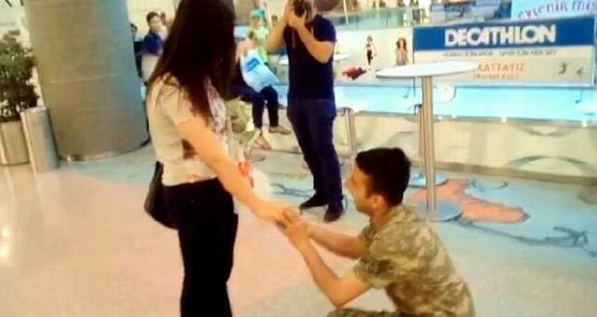Adana'da bir kamu kurumunda memur olan İpek İ., sosyal paylaşım sitesi Facebook'ta Ahmet Türker ile arkadaş oldu. İnternet üzerinden sohbet eden Türker, İpek İ. ile tanışmak istediğini söyleyip, Adana'ya geldi. Genç kızla tanışan Türker, 3 ay ilişki yaşadı. Gaziantep'te askeri birlikte çalıştığını söyleyen Türker, en son Adana'ya geldiğinde bir AVM'de randevu verdi. AVM'ye gelen İpek İ., aşık olduğu adamı beklerken, süpriz evlilik teklifi aldı. Astsubay üniforması ile AVM'ye gelen Ahmat Türker, genç kızın önünde diz çöküp, evlilik teklifi yaptı. Çevredeki vatandaşlar da tanık olduğu romantik evlilik teklifini alkışlayarak kutladı. Romantik anlar fotoğraf ve video çekimi ile de ölümsüzleştirildi.