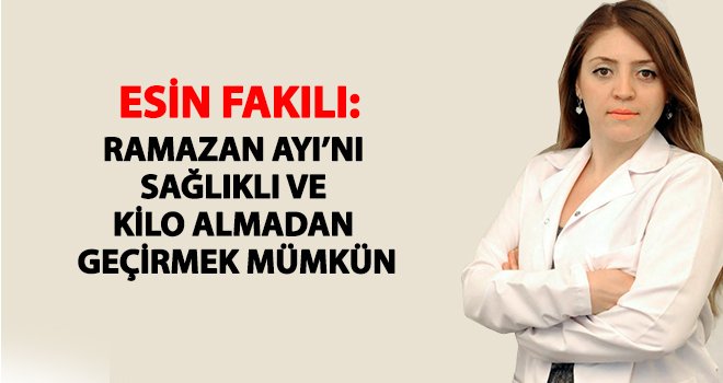 Fakılı, yaklaşan Ramazan Ayı öncesi yaptığı açıklamada, “Doğru bir beslenme tarzı ve doğru planlanmış egzersizlerle metabolizmanın yavaşlamasını engelleyerek, Ramazan Ayı’nı sağlıklı ve kilo almadan geçirmek mümkün” dedi.