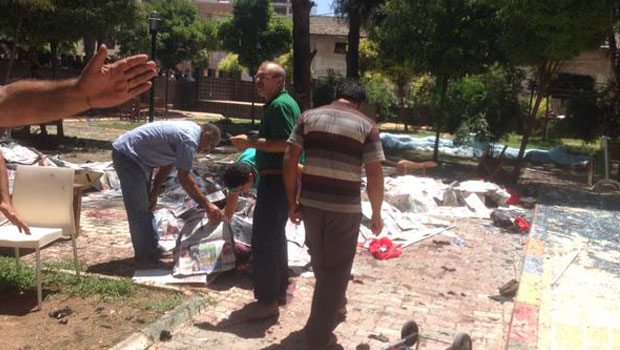 Şanlıurfa’nın Suruç İlçesi’ndeki Amara Kültür Merkezi önündeki çay bahçesinde bugün saat 11.50 sıralarında saatlerinde, Sosyalist Gençlik Dernekleri Federasyonu mensuplarının ’Kobani’nin yeniden inşası’ konusunda basın açıklaması yaptığı sırada, büyük bir patlama meydana geldi.