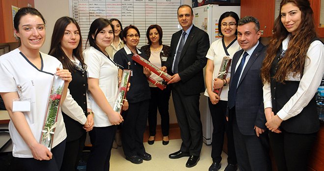 Dr. Yıldırım, ziyaret ettiği sağlık ve idari kadın personeline karanfil takdim ederek, her şeyin gönüllerince olması temennisinde bulundu.