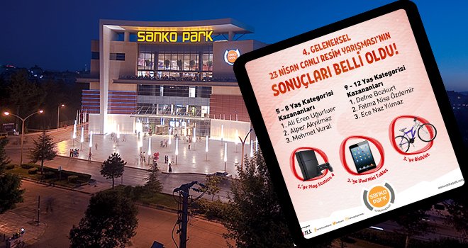 Sanko Park Alışveriş Merkezi’nde yoğun katılımla düzenlenen geleneksel 23 Nisan Resim Yarışmasında dereceye giren minikler ödüllendirildi.
