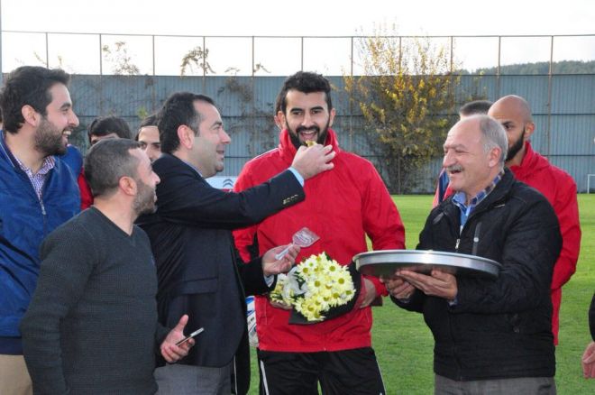 Gaziantepspor Taraftarlar Derneği Başkanı İrfan Karakuzulu ve dernek yönetim kurulu üyeleri Fenerbahçe maçı öncesi Teknik direktör Mutlu Topçu ve takımımızı ziyaret ederek antreman öncesi Kaptan Elyasa ya çiçek vererek Baklava ikramında bulundular.
