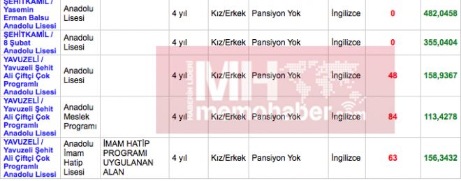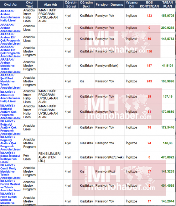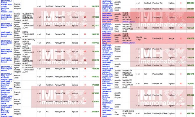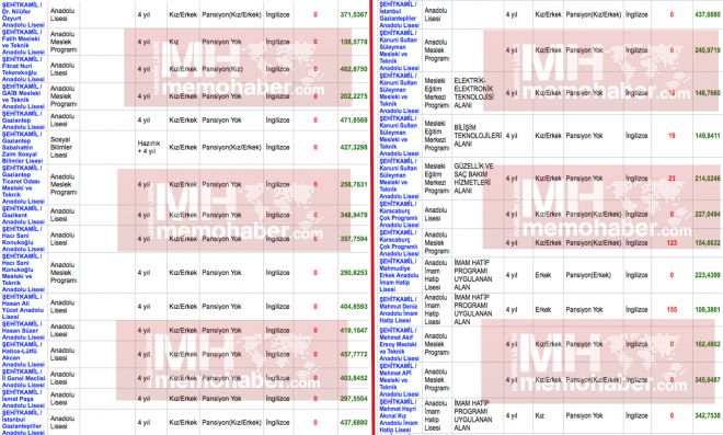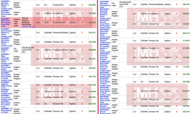 İŞTE GAZİANTEP VE İLÇELERİNDEKİ TÜM ORTA ÖĞRETİM OKULLARI VE PUANLARI