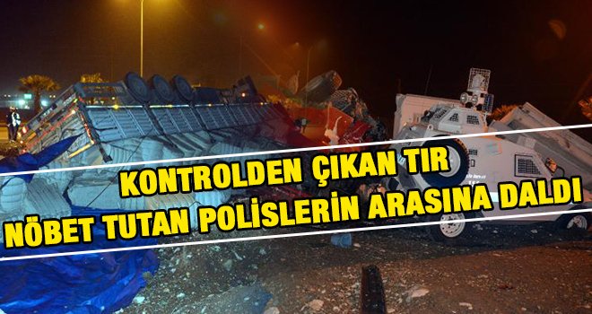 Sürücüsü uyuduğu iddia edilen pamuk balyası yüklü TIR, polis kontrol noktasındaki zırhlı kulübenin üzerine devrildi. Kazada yıkılan kulübenin altında kalan 1 polis ile TIR'daki 2 kişi yaralandı.