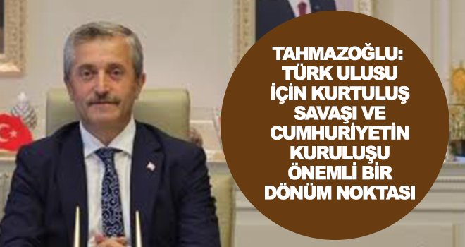 Başkan Mehmet Tahmazoğlu: "Türk Ulusu için Kurtuluş Savaşı ve Cumhuriyetin kuruluşu önemli bir dönüm noktası olmuştur. Bu nedenle Cumhuriyet, korunması ve ödün vermeden yaşatılması gereken en değerli varlığımızdır. Büyük Önder Atatürk'ün 'Onuncu Yıl Nutku’nda: “Yurdumuzu dünyanın en mamur ve en medenî memleketleri seviyesine çıkaracağız. Milletimizi en geniş refah, vasıta ve kaynaklarına sahip kılacağız. Millî kültürümüzü, “Muasır Medeniyet” seviyesinin üstüne çıkaracağız.” sözünden hareketle, her türlü yokluk ve sıkıntı ile kurulan Türkiye Cumhuriyeti, bugün dünyanın sayılı ekonomileri içinde yer alarak, hızla gelişen bir ülke konumuna gelmiştir. Türkiye Cumhuriyeti Devleti'nin 2023 vizyonu çerçevesinde dünyanın en gelişmiş ülkeleri arasına girmek için ülke genelinde büyük bir azim ve gayretle çalışmalar yürütülmektedir. Bu nedenle yüce Türk Milleti, kendine emanet edilen Türkiye Cumhuriyeti vatandaşları olarak ırk, dil, din farkı gözetmeksizin, Türkiye Cumhuriyeti’ni oluşturan tüm unsurlarımızla birlikte barış ve huzur içerisinde geleceğe azimle yürüyerek, Türkiye Cumhuriyeti Devleti'ni ilelebet yaşatmak en büyük hedefimizdir. Cumhuriyetimizin kuruluşunun 96. yıl dönümünü en kalbi duygularımla kutlar, Cumhuriyetimizin kurucusu Gazi Mustafa Kemal Atatürk başta olmak üzere şehitlerimize Yüce Allah'tan rahmet dilerken, Gazilerimize minnet ve şükranlarımı sunuyorum" dedi.