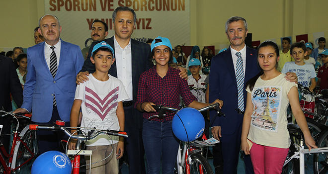 İlk aşamada 600 bisikletin toplamda ise 3 bin 500 bisikletin dağıtımının yapılacağı törende konuşan Gaziantep Valisi Ali Yerlikaya, son dönemlerde obezite ile ilgili ciddi sıkıntıların yaşandığını ve bunu aşmak için Sağlık Bakanlığı'nın ciddi mücadeleler verdiğini belirterek, "Sağlık Bakanlığı belediyelere belli bir kilometre yürüyüş ve bisiklet yolu yaptığı takdirde bisiklet veriyor. Şahinbey Belediyesi de bu yaptığı yollar karşılığında aldığı bisikletleri Sağlık Bakanlığı ile yaptığı protokol ile başarılı öğrencilere veriyor. Bu girişim ilk defa Şahinbey Belediyesi tarafından yapıldı. Başkan Mehmet Tahmazoğlu ve ekibine yapmış oldukları bu başarılı çalışmalardan dolayı teşekkür ediyorum" dedi.