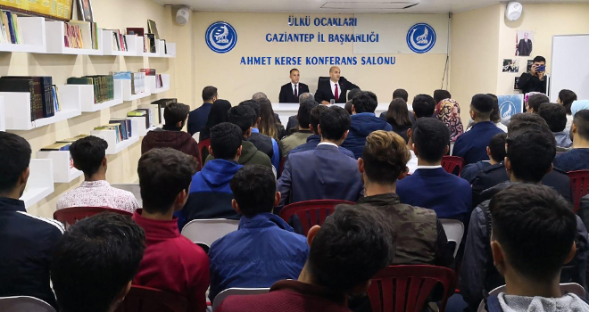 Ülkü Ocakları Gaziantep İl Başkanı M. Fuat Yozbatıran’dan yapılan çalışmalar hakkında bilgiler alan Kılavuz, daha sonra Ülkü Ocakları Gaziantep İl Başkanlığı Ahmet Kerse Konferans Salonu’nda ocak yöneticileri, ilçe ocak başkanları, bayanlar birimi ve üniversite teşkilatı ile sohbet etti.