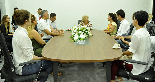 2017-2018 eğitim öğretim yılında Gaziantep Kolej Vakfı Özel Okullarında ilk kez göreve başlayan öğretmenler GKV Mütevelli ve Yönetim Kurulu Başkanı Nüket Ersoy’u makamında ziyaret etti. Öğretmenlerle uzun uzun sohbet eden Ersoy öğretmenlik mesleğinin önemini anlatarak Gaziantep Kolej Vakfı’nın 54 yıllık eğitim serüveni hakkında öğretmenlere bilgiler verdi.