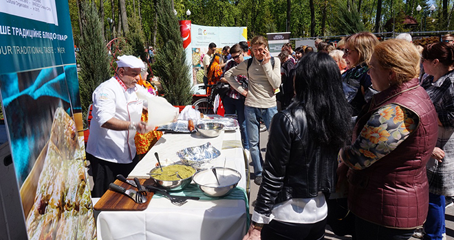 Gaziantep yöresel lezzetlerinin ikramı ise Kharkiv vatandaşları tarafından büyük bir memnuniyetle karşılandı. Özellikle katmer tanıtımı vatandaşlar tarafından ilgiyle takip edildi. Mutfağa girip katmer hamuru açmayı deneyen vatandaşlar Gaziantep mutfağının çok lezzetli fakat zor bir mutfak olduğunu ifade ettiler.
