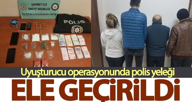Şahinbey ilçe Emniyet Müdürlüğü ekiplerince, Konak Mahallesinde uyuşturucu madde satışı yapıldığı tespit edilen bir adrese yapılan operasyon yapıldı. Yapılan aramalar da paketler halinde toplam 105 gram uyuşturucu madde, 54 adet 7,65 mm çapında fişek, ve 1 adet sivil polis yeleği ele geçirildi.
