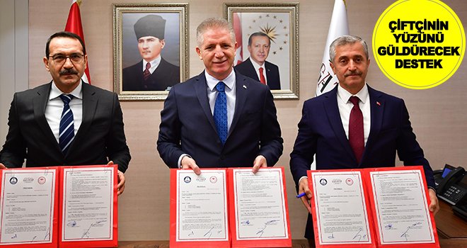 Çiftçilere 7.000 ton küçük ve büyükbaş hayvan yemi desteğinde bulunulmasını içeren işbirliği protokolü imzalandı. Valilik’te gerçekleştirilen protokol imza töreninde konuşan Vali Davut Gül, protokolün, çiftçiyi bir nebze olsun rahatlatarak çiftçinin yüzünü güldüreceğini söyledi.