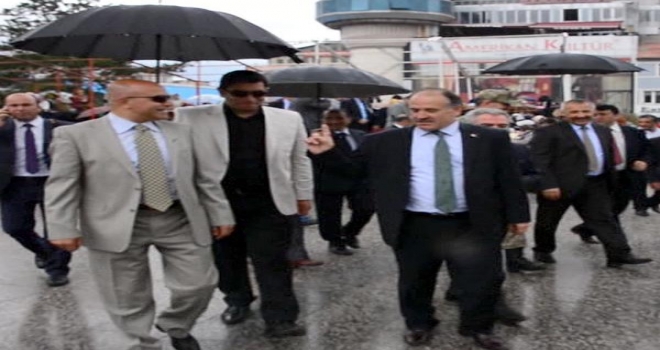 Kalabalığın büyük bir bölümü tören alınından kaçarak uzaklaşırken Büyükşehir Belediye Başkanı Vekili Eyüp Tavlaşoğlu, Yakutiye Belediye Başkanı Ali Korkut, İl Jandarma Komutanı Albay Uysal Ağaoğlu, Milli Eğitim Müdürü Yüksel Arslan korumalarının ya da kendilerinin tuttuğu şemsiyenin altına girerek yağmurdan korunmaya çalıştı. Protokolde tek şemsiyesiz yürüyen ve serginin açılış kurdelesini kesmeye giden Yakutiye Kaymakamı Ahmet Katırcı, yanındakilere ve vatandaşlara, "Allah'ın rahmetinden kaçılmaz" diye uyarıda bulundu. Yağmurun şiddetini artırması üzerine adımlarını hızlandıran Kaymakam Katırcı'ya gazeticiler, "Siz nereye gidiyorsunuz?" diye sordu. Kurdele kesmeye gittiğini ifade eden Kaymakam Katırcı, "Bakın ben kaçmıyorum. Böyle yürüyorum. Biz kaçsak bile rahmete basmamak için kaçarız" diye karşılık verdi.
