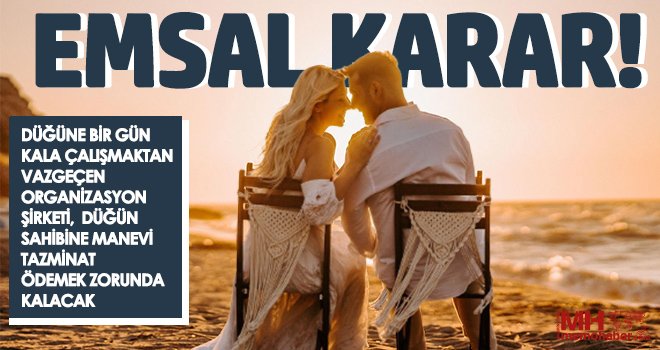 Yargıtay Hukuk Genel Kurulu; düğünden önce organizasyonu yapacak firmanın bundan vazgeçmesi üzerine emsal bir karara imza attı. Hukuk Genel Kurulu, "Düğünden bir gün önce organizasyon şirketinin düğünde görev alamayacağını bildirilmesi manevi tazminatı gerektirir" dedi.