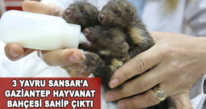 Şanlıurfa’da bir yol çalışması esnasında enkazın altından kurtarılarak Gaziantep Doğal Hayatı Koruma ve Hayvanat Bahçesi’ne getirilen 3 yavru Sansar, hayvanat bahçesi görevlileri tarafından büyütülüyor.