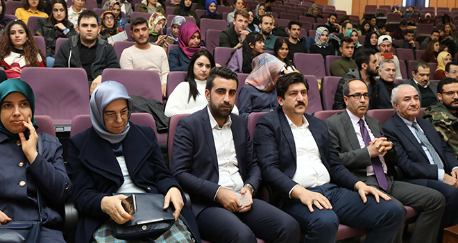 “Şehit için üzülebilirsiniz ağlayabilirsiniz her şeyi yapabilirsiniz ama bir şehit yakını değilseniz bir şehidi özleyemezsiniz” diyerek salonda duygulu anlar yaşanmasına neden olan GAÜN Öğretim Görevlisi Zaim Başaslan konuşmasına dikkat çekici bir soruyla devam etti: “Aramızda şuanda hiç terörist varmı acaba? Ya da olamazmıydı? Hatta düzelteyim sorumu; aramızda hiç terörist yokmuydu? Bu sorunun önemini anlamamız gerekir. Çünkü bundan kısa bir süre öncesine kadar teröristler ya da terör destekçileri, belki sizin oturduğunuz koltuklarda, üniversitelerde, okullarda, hastanelerde, adli makamlarda, güvenlik kuvvetlerinin, adli makamların siyasetin, kısaca devletin ve hayatın her yerinde değillermiydi? Peki şimdi nerdeler? Uzaya gitmediklerine göre hala aramızdalar. Öyleyse vatan sevmenin ne olduğunu onu zaten çok iyi bilenlere değil o tadı bilmeyenlere, o ruhu taşıyamayanlara anlatmalısınız. O yüzden bugünün önemine binaen Akif dedeyi anlamaya çalışırken onun sadece şiirlerini değil dehalarını ve karakterini de örnek almamız ve vatan için ölmenin mukaddesatını sinemizde taşırken vatan için yaşamanın ne demek olduğunu da idrak etmemiz gerekiyor. Akif'in ve ecdadımızın dehasını ve öğretilerini hayatımıza nakşetmeliyiz. Dostu herkes dost edinir mesele düşmanı da dost haline getirebilmektir. Ve bunu yaparken bir olmanın gücünü asla göz ardı etmemelisiniz. Çünkü biz bir olmanın gücünü ecdadımız sayesinde defalarca gördük. Bugün de Afrin'de görüyoruz. Ben kendi adıma kısa süre önce küçük bir yardım hareketi başlattıktan sonra çığ gibi büyüyen bir milli birlik örneğine şahit oldum. Bir öğrencimin isteği üzerine Afrin'de savaşan asker bir yakınının çorap ihtiyacına destek olmak için sosyal medyada yaptığımız küçük bir paylaşım 10 günde büyüdü ve yüzlerce binlerce insanın dualarıyla bezenmiş yaklaşık 20 bin lira değerinde çorap ve iç çamaşırını götürüp ellerimizle Mehmetçiğimize teslim edip orada omuzlarına omuz verdik. Selam götürdük selam getirdik. Şimdi inşallah, yakın zamanda bir olmanın gücünü tekrar göstermek ve Mehmetçiğimizin yanında olduğumuzu onlara hissettirmek için, "1 Olmak İçin Afrin" sloganıyla bir Türk lirasıyla herkesin katılabileceği bir kampanya başlatacak ve bölgedeki komutanlarımızla devam eden irtibatımız dahilinde askerlerimizin en acil ihtiyaçları ne ise onu alarak götürüp teslim edecek ve moral vereceğiz."
