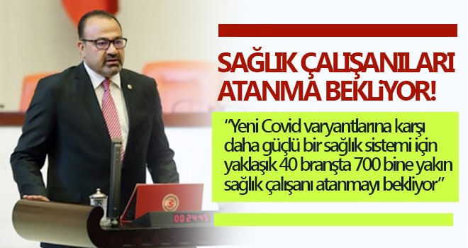 Yılmazkaya, “Buradan Sağlık Bakanına seslenmek istiyorum: Yeni Covid varyantlarına karşı daha güçlü bir sağlık sistemi için yaklaşık 40 branşta 700 bine yakın sağlık çalışanı atanmayı bekliyor. Bu atamalar yapılırsa yorgun ve bitkin olan sağlık sitemimize taze kan olacaktır. İş bekleyen sağlık meslek gruplarına çözüm üretilmesi için sağlıkta beklenen atamaların bir an önce yapılması şart. Cerrahi anestezi teknikerleri, servis yoğun bakım hemşireleri, odyoloji, acil tıp teknisyeni, optisyen, ağız ve diş sağlığı teknikerleri ve doktor kadrolarındaki boşluklara gerekli atamalar mutlaka yapılmalıdır” ifadelerini kullandı.