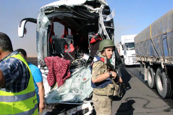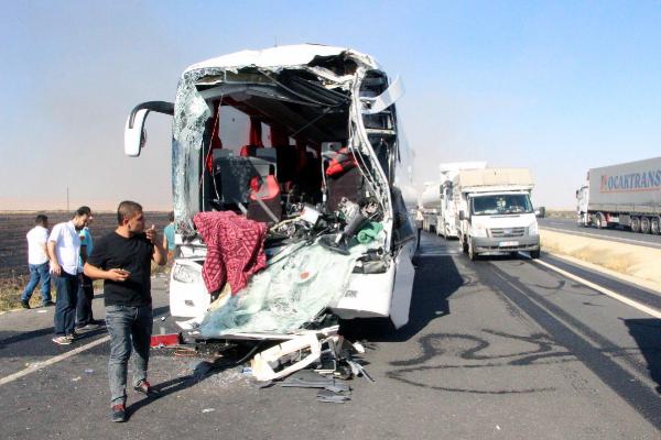 MARDİN'in Nusaybin İlçesi'nde yolcu otobüsünün önünde giden yakıt tankerine arkadan çarpması sonucu meydana gelen kazada 2 kişi öldü, 13 kişi yaralandı. Tankerin boş olması, olası bir faciayı önledi.